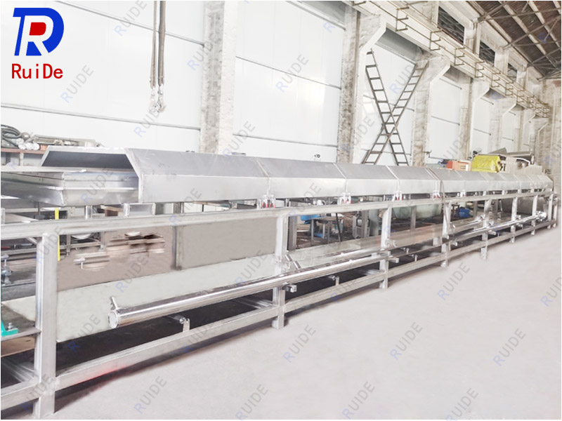 案例描述:熔融的液态硫磺物料,在液硫池内经潜液保温夹套泵和蒸汽夹套管线及过滤器,送 入造粒机的滴落机,造粒机的滴落机将熔融液态硫磺物料成液滴状一排一排地喷洒在运 行着的冷却钢带上,冷却钢带下方喷有冷却水,钢带上方硫磺液滴经过冷却,固化成扁 半球状颗粒,由卸料刮刀刮下,流入下料斗进入包装机料仓。颗粒直径约3-6mm,高度 约1.5-1.8mm,整机宽度有:1200mm、1600mm、1800mm和2100mm,整机长度有 13m,单机产量有1500kg/h、3000kg/h、4000kg/h和6000kg/h,可配半身动或全自动 包装机,完成自动包装码垛。